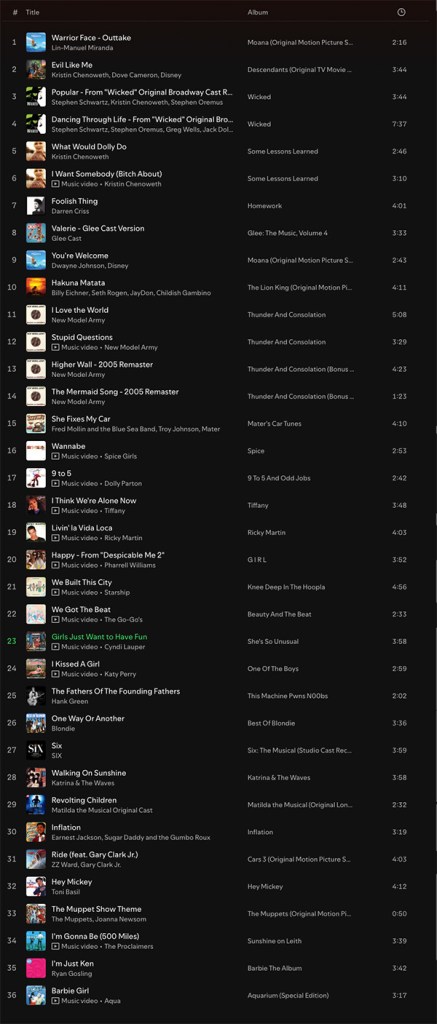 Unfortunately this version of WordPress doesn’t let me embed the list fully. So here’s a link to play it.