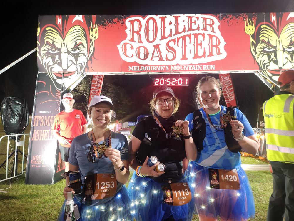 It was elevation from the start, so the 300m of hard was just extra hard. It was actually only 150m but with 35% gradient. A 5% hill is considered steep. This was a wall. It was also my first 34 minute 19 second kilometre. For comparison, our run sub-group is called the 7-minute pace club. Then even the “easy parts” were just continually going up. Every crest and corner just revealed more up. Michelle made up light-up tutus and in the last 2km all I could see was Leith’s skirt in front. The fairy lights made the shape of angel wings, so with her in front, and a bit higher elevation, I was following an angel up the mountain. It was a constant reminder there was more up to go, so less motivating than you’d think.